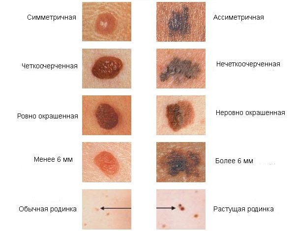 У здоровой родинки края ровные и четкие. Размытые, изорванные края – повод обратиться к врачу для проверки родинки на онкологию. Родинки, отличающиеся вкраплениями необычных цветов – черного, синего, красного, белого – явный признак онкологии. 5 мм считается максимальным размером для здорового родимого пятна.