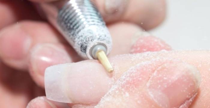 - После размягчения воспользуйтесь маникюрными инструментами, чтобы аккуратно удалить смягченный верхний слой ногтя.
