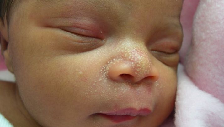 «Можно быть абсолютно спокойным при каких-либо близких контактах со своими близкими друзьями или родственниками, так как милиумы абсолютно не заразны. Бессмысленно убирать милиумы, они могут появиться снова. Если их не убирать, то возможен даже воспалительный процесс. Милиумы могут пройти сами.»