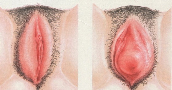 Основные симптомы гипертрофии малых половых губ. Основные симптомы – дискомфорт, проблемы во время сексуальных контактов, сухость, жжение в области увеличенных тканей. В такой ситуации гениталии приобретают неестественный цвет, становятся более морщинистыми и дряблыми.