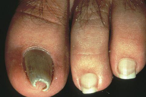 Что может вызвать потемнение ногтей на больших пальцах ног?